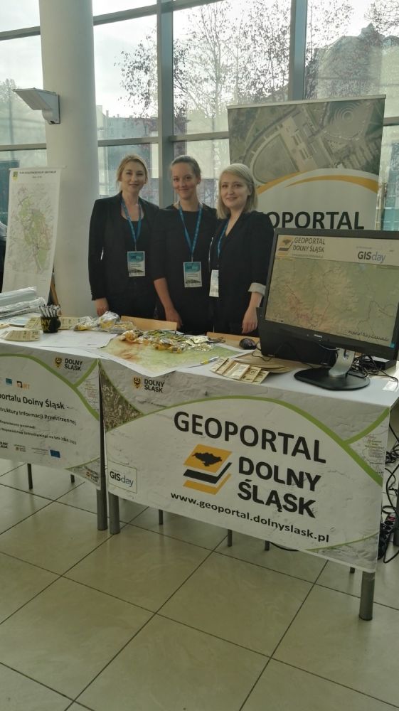 Byliśmy obecni na IV Wrocławskim GISDay, organizowanym przez koła naukowe z trzech czołowych wrocławskich uczelni: Politechniki Wrocławskiej, Uniwersytetu Przyrodniczego we Wrocławiu oraz Uniwersytetu Wrocławskiego. 16 listopada na naszym stoisku prezentowaliśmy Geoportal Dolny Śląsk oraz informowaliśmy o pracach związanych z projektem pn. „Rozbudowa Geoportalu Dolny Śląsk - budowa Dolnośląskiej Infrastruktury Informacji Przestrzennej". Projekt ten realizowany jest w ramach Regionalnego Programu Operacyjnego 2014-2020. Zainteresowani mogli otrzymać informator Wydziału Geodezji i Kartografii UMWD, ulotki dotyczące projektu „Rozbudowa Geoportalu Dolny Śląsk", mapy oraz upominki reklamowe Dolnego Śląska.