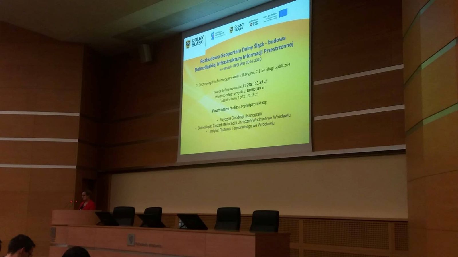 Podczas sesji wykładowej Iwona Nakonieczna (dyrektor Wydziału Geodezji i Kartografii UMWD) wygłosiła referat pt. „Rozbudowa Geoportalu Dolny Śląsk – budowa Dolnośląskiej Infrastruktury Informacji Przestrzennej", skierowany przede wszystkim do licznie zebranej młodzieży ze szkół średnich oraz studentów.