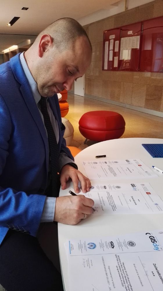 15 listopada braliśmy również udział w konferencji organizowanej w ramach wdrażania projektu „Budowa Systemu Informacji Przestrzennej oraz rozwój e-usług publicznych i elektronicznych usług administracyjnych w północno-zachodniej części województwa dolnośląskiego", w Bolesławcu. Projekt jest dofinansowywany ze środków Europejskiego Funduszu Rozwoju Regionalnego w ramach Regionalnego Programu Operacyjnego Województwa Dolnośląskiego na lata 2014-2020. Omawiana tematyka dotyczyła zagadnień związanych z infrastrukturą informacji przestrzennej oraz e-usług.