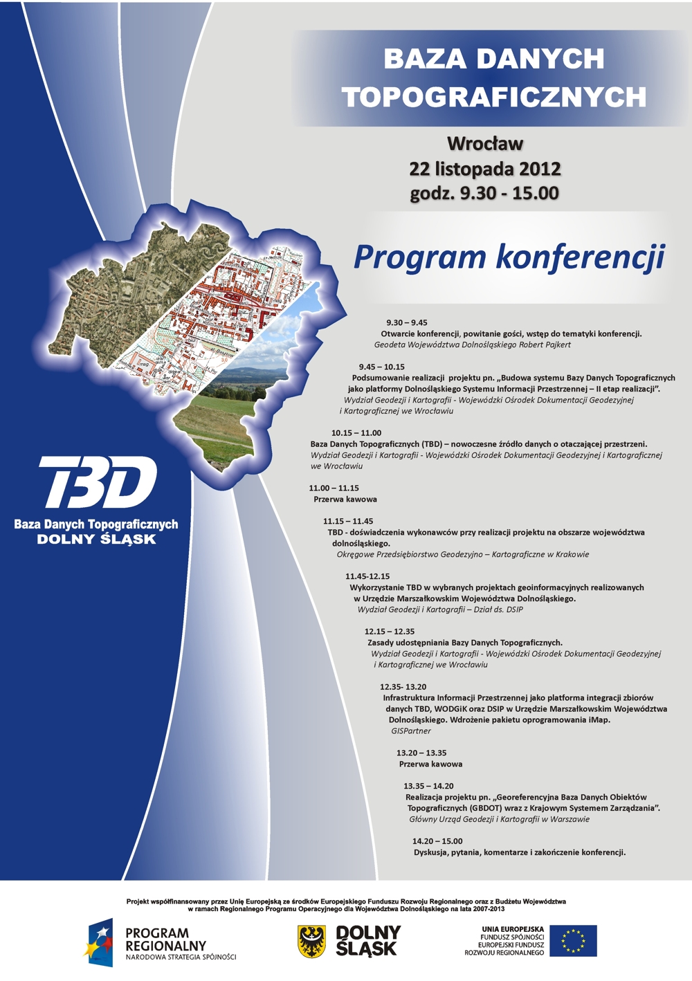 Dziękujemy serdecznie wszystkim uczestnikom konferencji podsumowującej projekt pod nazwą: „Budowa systemu Bazy Danych Topograficznych jako platformy Dolnośląskiego Systemu Informacji Przestrzennej – II etap realizacji", odbyła się w dniu 22 listopada 2012 roku w Auli Jana Pawła II w gościnnych progach Uniwersytetu Przyrodniczego we Wrocławiu.