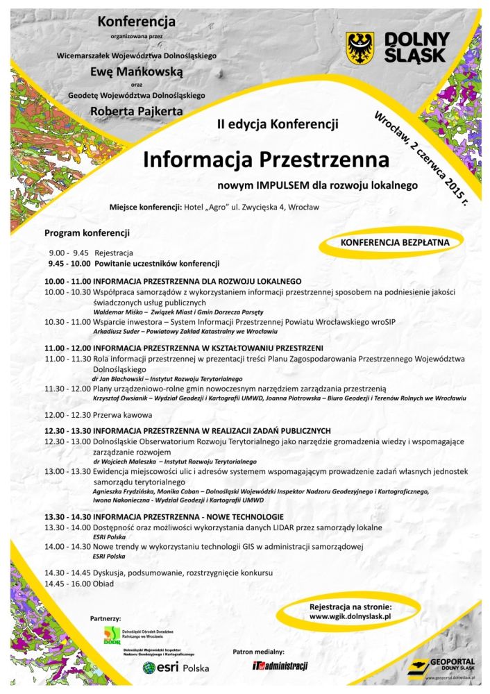 W dniu 2 czerwca 2015 roku we Wrocławiu odbyła się II edycja konferencji pod nazwą „Informacja przestrzenna nowym IMPULSEM dla rozwoju lokalnego". Konferencja została zorganizowana z inicjatywy Wicemarszałek Województwa Dolnośląskiego Ewy Mańkowskiej oraz Geodety Województwa Dolnośląskiego Roberta Pajkerta.