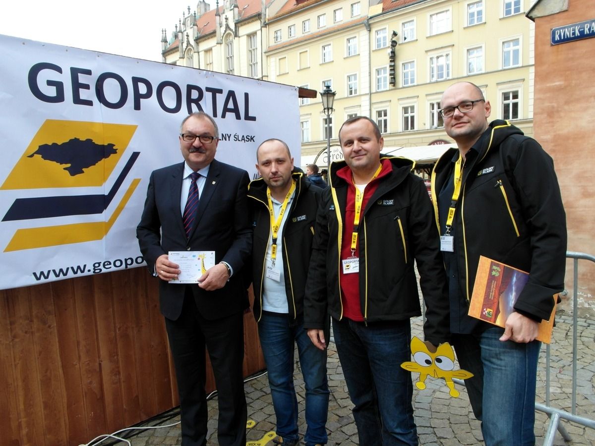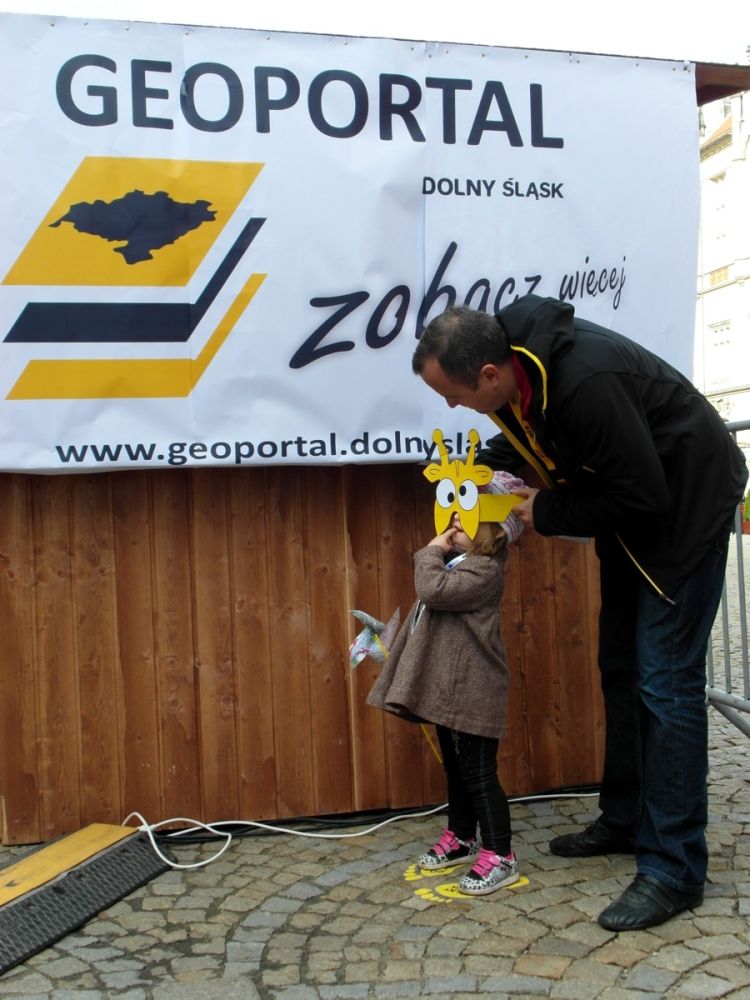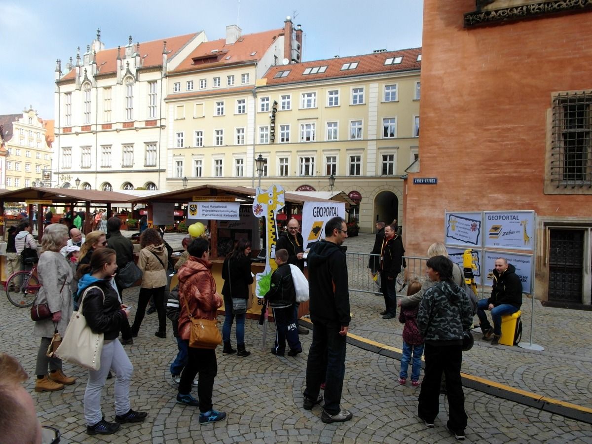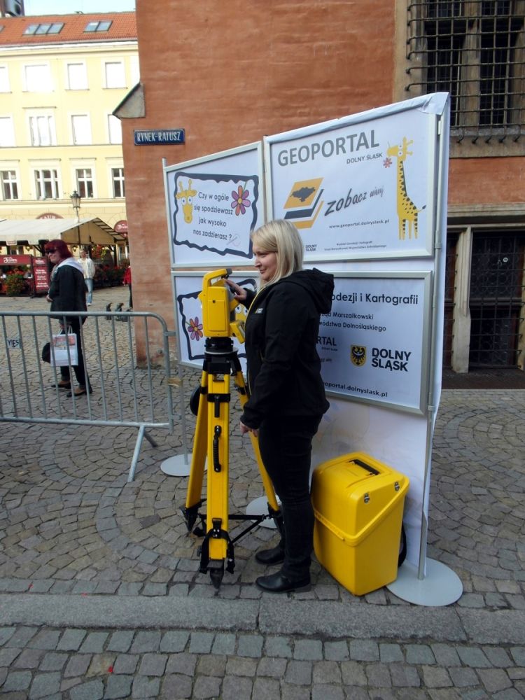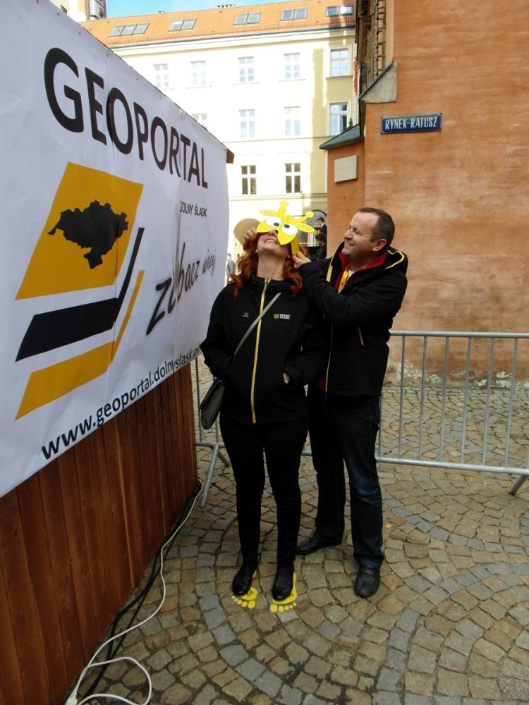 W minioną sobotę 18 października 2014 r. na Rynku Starego Miasta we Wrocławiu odbyły się obchody Święta Województwa Dolnośląskiego. Nie zabrakło tam przedstawicieli Geoportalu Dolnego Śląska. Przy stoisku nr 37 w godz. 10.00 - 18.00 można było zapoznać się z możliwościami naszego geoportalu, porozmawiać o systemach informacji przestrzennej, a nawet dokonać pomiaru dumy Dolnoślązaka metodą wyznaczania wysokości zadzierania nosa. Nasz punkt cieszył sie ogromną popularmnością - odwiedziły go setki mieszkańców chcących porozmawiać o cyfrowych mapach Dolnego Śląska i uzyskac certyfikat pomiaru tachimetrem. Dziękujemy wszystkim za przybycie!