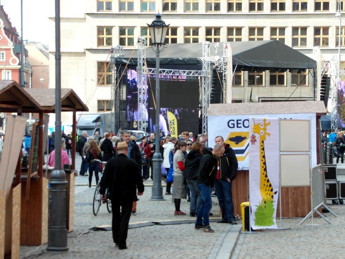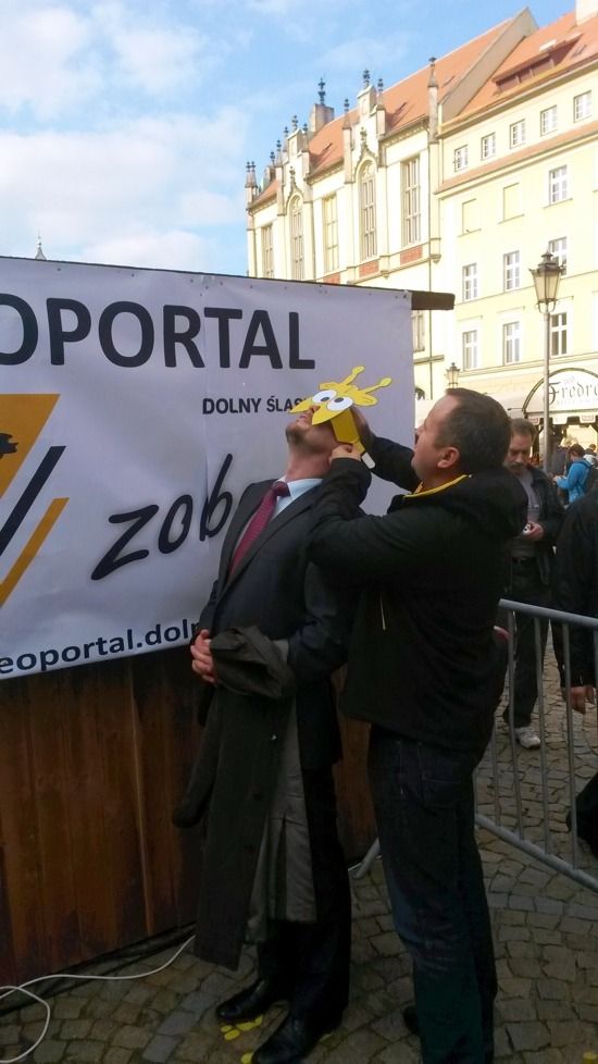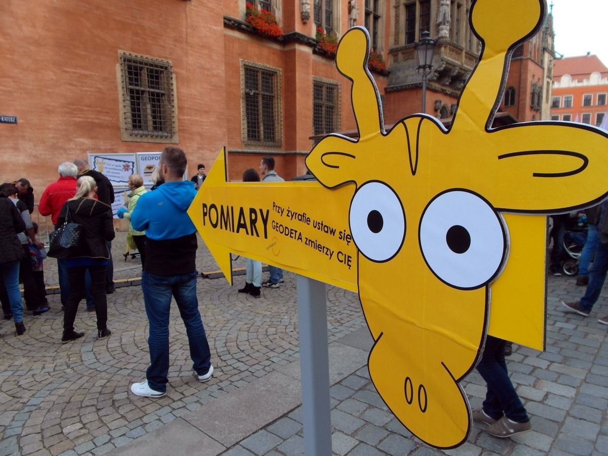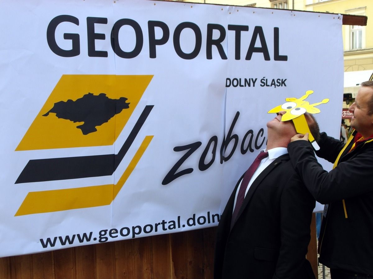 W minioną sobotę 18 października 2014 r. na Rynku Starego Miasta we Wrocławiu odbyły się obchody Święta Województwa Dolnośląskiego. Nie zabrakło tam przedstawicieli Geoportalu Dolnego Śląska. Przy stoisku nr 37 w godz. 10.00 - 18.00 można było zapoznać się z możliwościami naszego geoportalu, porozmawiać o systemach informacji przestrzennej, a nawet dokonać pomiaru dumy Dolnoślązaka metodą wyznaczania wysokości zadzierania nosa. Nasz punkt cieszył sie ogromną popularmnością - odwiedziły go setki mieszkańców chcących porozmawiać o cyfrowych mapach Dolnego Śląska i uzyskac certyfikat pomiaru tachimetrem. Dziękujemy wszystkim za przybycie!