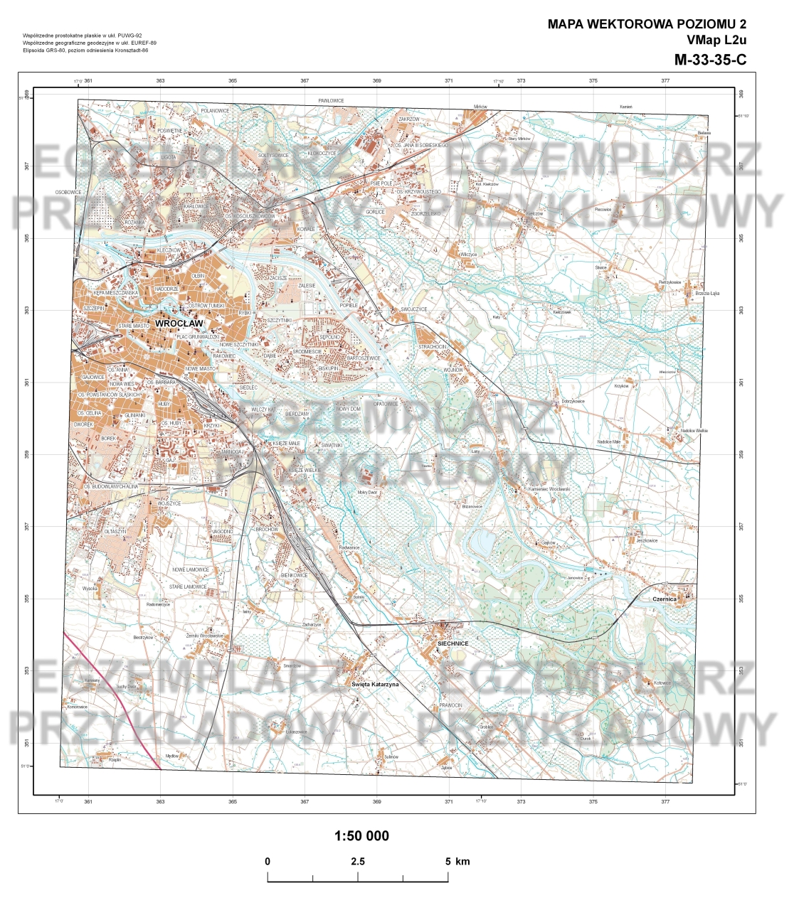 Przykładowy arkusz mapy wektorowej poziomu 2 (wersja użytkowa), w skali 1:50 000, w układzie 1992