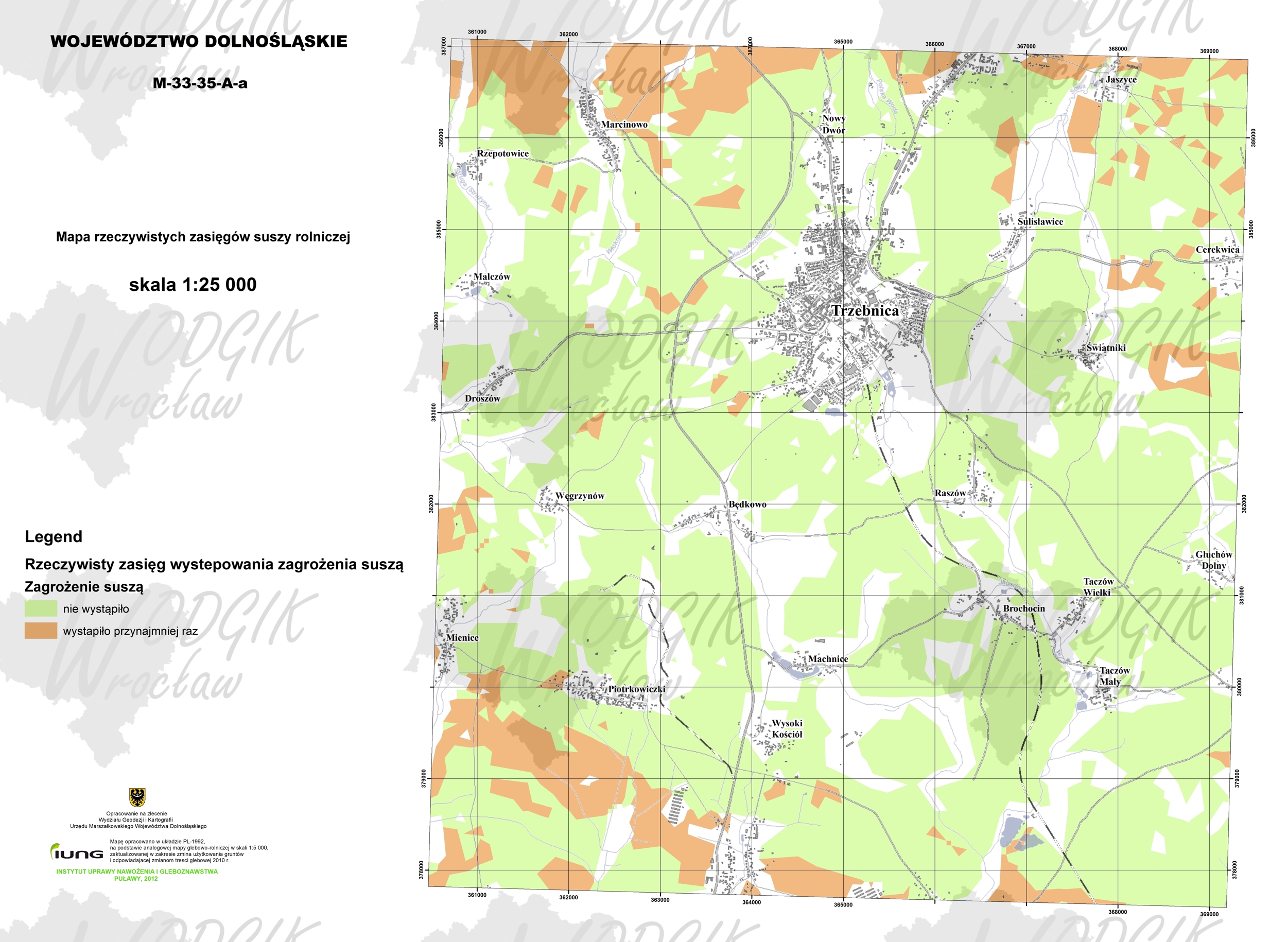 Mapa rzeczywistych zasięgów suszy rolniczej w województwie dolnośląskim w latach 2007-2013 powstała przez zsumowanie rzeczywistych stref zasięgu suszy rolniczej w województwie dla poszczególnych gatunków i grup roślin wykazanych w systemie monitoringu suszy rolniczej w latach 2007-2013. Przedstawia maksymalny zasięg suszy jaki wystąpił w analizowanym czasie.