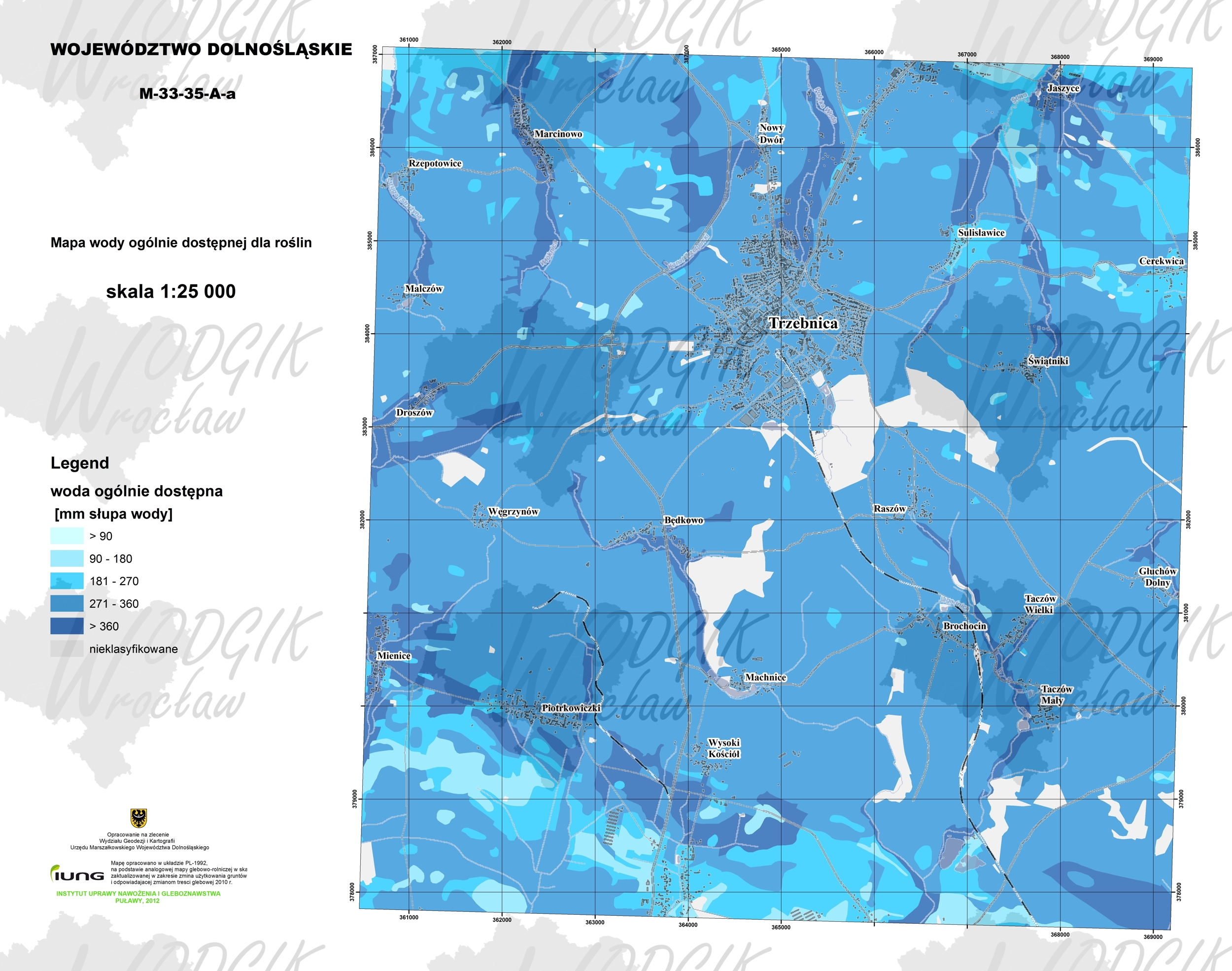 Na podstawie mapy glebowo-rolniczej w skali 1:5 000 oraz danych pozyskanych z Systemu Monitoringu Suszy Rolniczej w Polsce dla poszczególnych gatunków i grup roślin powstało opracowanie dotyczące „Oceny wody w glebie i zagrożenia suszą w oparciu o bilans wodny dla obszaru województwa dolnośląskiego". Zostało wykonane przez Instytutu Nawożenia Uprawy i Gleboznawstwa – Państwowy Instytut Badawczy w Puławach. W wyniku przeprowadzonych analiz powstał szereg map charakteryzujących województwo dolnośląskie pod względem warunków retencyjnych gleb.